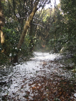 鳥居をくぐって進むと、気分は冬山登山訓練です。ただ、だんだん道が道じゃやなくなってきて、不安でドキドキです。遭難したらどうしよう・・・