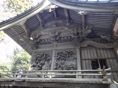 古めかしい神社でしたけど周辺にゴミ一つなく綺麗な境内。横に回りこむと何やら立派な彫刻も施されていました。残念ながら山頂付近の景観はひらけておらず、あっという間でお腹も空いてないので、そのまま下山することに。