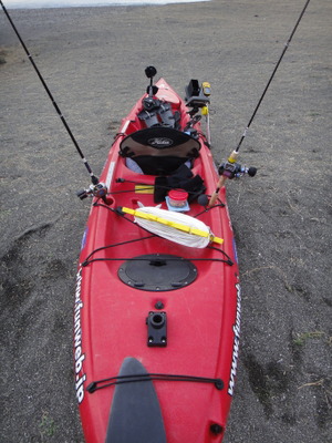 翌朝ステラくんとの待ち合わせ時間ピッタリに現地入り。到着と同時に時報のチャイムがなるほど正確無比な行動に、尊敬の眼差しで見つめるステラくんを尻目に、期待に胸を膨らませながら、セッティング完了して着替える段階で、ウェアーを忘れていることに気づいて、脱力しながら、セッティングしたばかりの艤装を外して車載完了。