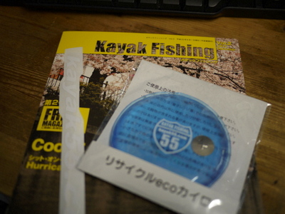 今日カヤックフィッシングのポータルサイトカヤック55から荷物が届いて、なんだろー?と開けてみると、中からスッテカーとエコカイロが!