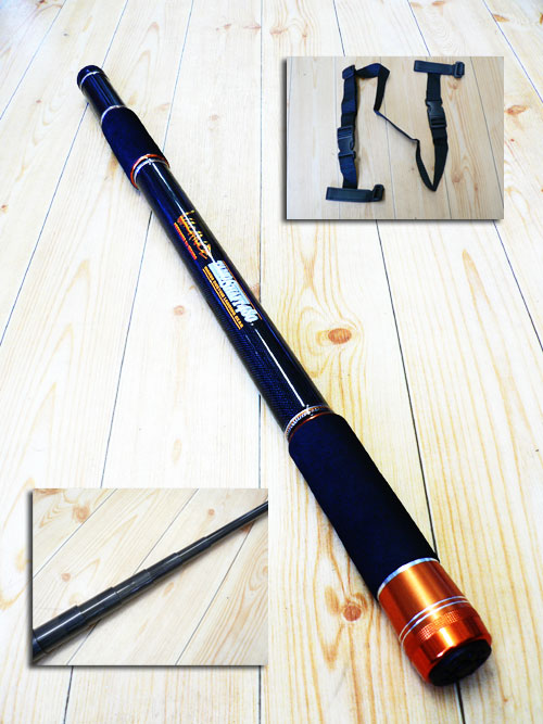 350cmと480cmと、2種類入荷。各ピースごとに先端を別折カーボンで補強してあります。EVAグリップが握りやすく、軽量シャフトと相まって、抜群の使用感です。標準装備のストラップも工夫されていて、背負った状態からワンタッチコネクタで、すばやく簡単に取り外せます。
