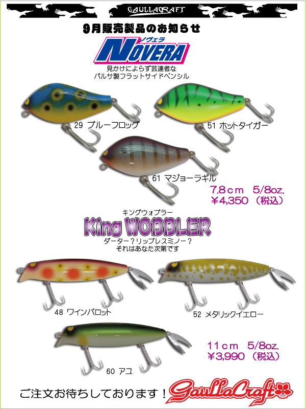 ガウラクラフト9月ルアー予約受付。