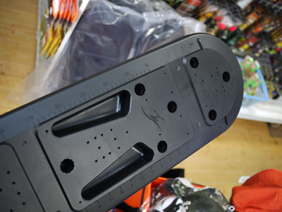 艤装がしやすいようにいろいろな工夫がされています。RAMマウントのベースを取り付ける際の穴が予め設定(浸水対策で裏面も処理されてます)されていたり、スコッティが装着可能な凹穴が装備されていたりと、トライデントオーナー待望のオプションパーツです。