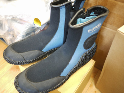 ソックス履いてドライスーツ履くとモンベルのパドリングシューズはちょっときついなって