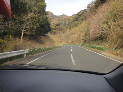 路肩に水仙が咲き乱れる鋸山観光自動車道を進むと無料駐車場です。