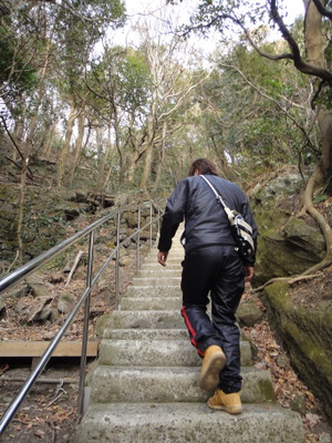 そこで我々を待ち受けていたものは、心臓破りの階段(最初から最後(山頂)まで階段)。お互い次第に口数がヘリ、かわりに吹き出す汗を拭いながら、ときおりぼそっと600円も払ってこの仕打ちか、と呟きながら歩くこと30分ぐらいだったっけ?