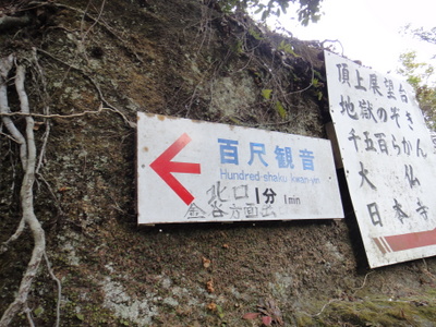 さあ、おかなも満たされたので、観光しながら下山することに。まずは百尺観音。案内看板はなぜか百だけ翻訳されあとはローマ字表記。ハンドレッドシャクカンノン(笑)