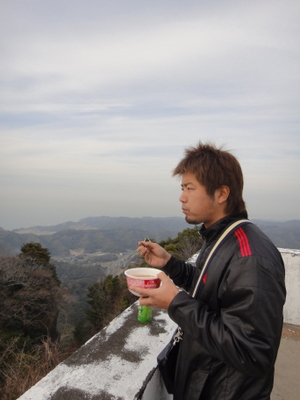 さていよいよ今回のメインイベント、山頂昼食会の開催です。重いからって途中で水捨てなくてよかったです。