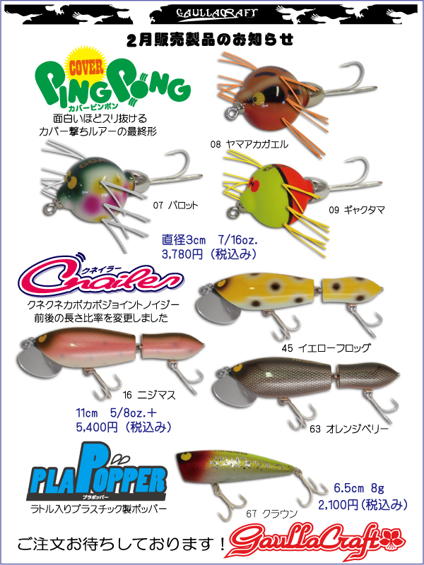新作のカバーピンポン、クネイラー、プラポッパーご予約受付中です。
