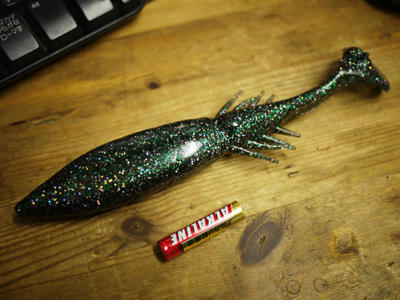 でっけーー。今日営業さんにはじめて実物を見せてもらった、スミスさんの新作シャッドワームです。