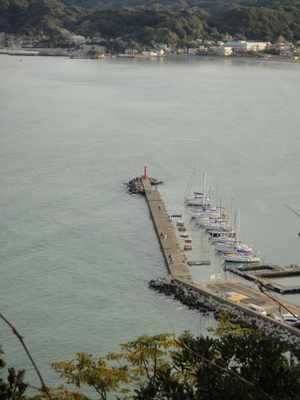 駐車場に戻るみちすがら眼下に富浦港が見えました。奥まっているので意外と知られてないんですけど、ここの港の構内におさかな倶楽部という漁協直営の食堂があってオススメですよ。