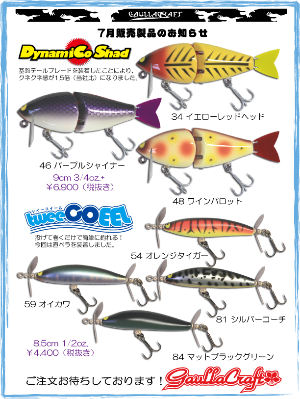ガウラクラフト 7月発売ルアー予約受け付け中です。