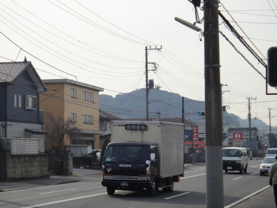 お店の前の道路から南を眺めると、そこに山があります。