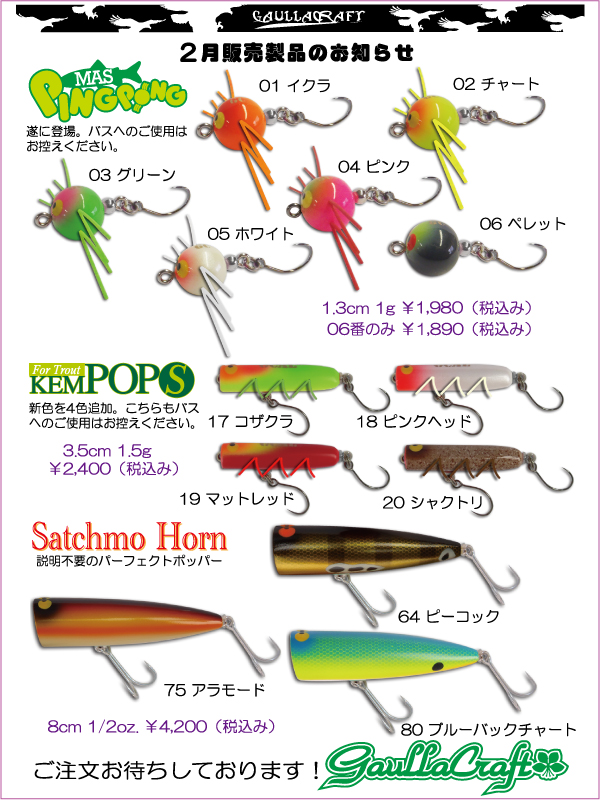 ガウラクラフトの2月発売予定のルアーを予約付け付け中です。